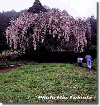 お天気も良くないのに、たくさんの人が観に来ている。テントが張ってあり、おでんなどの出店もある。みんな桜の花が好きなのだ、そんな中にたたずんでいると嫌なことなど忘れさせてくれる。こんもりした丘の上に建つ民家の庭先に咲く桜。このお宅は庄屋さんである中越家。中越家は佐川領主深尾公の休憩の地とされ、現当主の祖父・中越信紀氏が植栽したものだそうだ。樹齢は約160年あまり。現在も土佐三大祭りのひとつ「秋葉の練」もこの庭でおこなわれる由緒ある場所である。「秋葉の枝垂れ桜」と言う別