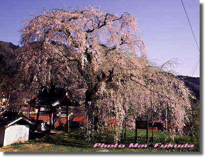 枝垂れ桜の女性的な美しさに魅せられて、20代の頃は枝垂れ桜ばかりを追いかけていたのです。しかし枝垂れ桜の情報はなかなか無いことに気が付きました。それは枝垂れ桜は、よほどのことがないかぎり、そこであまり「お花見」をしないからだと言うことを発見しました。ヤマザクラの巨木などは地元の方は良く知っておられるのに、意外と大きな枝垂れ桜の在りかはご存じありません。この「泰雲寺の枝垂れ桜」は、クルマで走っていて偶然見つけたものです。私は以前、豊岡にある大学の仕事をしているとき、仕事の翌日は北近畿、鳥取のあちこちを撮影して回りました。もちろん地元の学生や教職員の方に色々な見どころを教えていただいて撮影に回っていたのです。鳥取からの帰り、うっすらと雪が積もっているかのように見えるところがあったのです。それがこの桜です。樹齢200年ほどのそんなに巨木でもなく、細すぎもせず姿が美しい、ほんに美形の芸者さんのようです。花の色もきつすぎもせず、ほんのり紅色と言った表現のぴったりな桜です。 吉永小百合さんの「夢千代の日記」で、有名になった湯村温泉のすぐ近くにある泰雲寺(たいうんじ)の境内にある桜です。日本海側のこの地方は風が強く、桜のお花見も強い風との兼ね合いになるのだけれど、自然の厳しい地方にもこんな立派な桜があるのかと、一目見たときは感動しました。ところで夢千代日記で脚光をあびた西の啄木と言われた前田純孝、彼はこの桜を知っていたのだろうか。ドラマでの前田純孝役の松田優作さんの演技を思いだしたり、あぁ自分の病気と前田純孝の姿をだぶらせて演技していたのだろうか、などと考えながら。松田優作さんも桜がすきだったのか、役者の桜金造さんの「桜」は彼が名付け親らしい。 *このページの製作年は1996年、データ内容は当時のものです* |